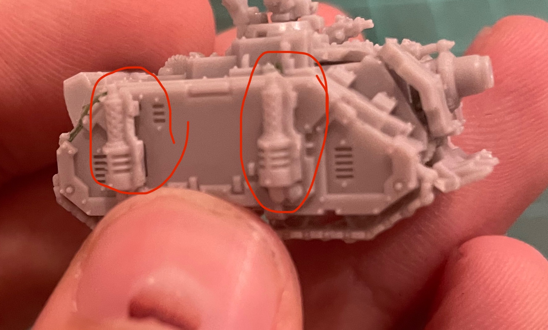 My only problem is that about 3/8 of the tanks had some mould shift where the two halves were misaligned. Mostly visible on the guns, exhausts (photo 1) and rear door (photo 2). For 2 of them it was fairly minor but for one it was really bad (though still usable).